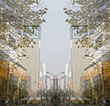 Steht ein Foto für die Realität oder es nur eine Täuschung? Für einige, wie dem französischen Filmund Fotografi etheoretiker des vergangenen Jahrhunderts André Bazin war es „ein Phantom der Realität“, für andere – seien es Surrealisten – wurde es zum Äquivalent einer „realen Fiktion“. Es kommt schließlich vor, dass auf dem uns sehr real und konkret wirkenden Bild ein fi ktives Element der Manipulation deutlich ist. Einen Bildausschnitt wählend, transformieren wir die Realität in ein Bild. Daher können wir uns nie sicher sein bezüglich dessen, was die Fotografi e zeigt. In meinen Arbeiten gebrauche ich die der Fotografie innewohnende Unsicherheit und erzähle von dem, was jetzt ist und davon, was zukünftig geschehen, sich verändern und umwandeln kann. Ich überlasse dem Vorstellungsvermögen die räumliche Abbildung bekannter Orte. Was ich hingegen liefere sind Straßen, Parks und Häuser. Mittels symmetrischer Aufteilungen, Spiegelungen und Vervielfältigungen sorge ich dafür, dass der fotografi erte Raum, so materiell er auch tagtäglich sein mag, aufhört Realität zu sein, aber dennoch im Detail, in der Form und gefühlsmäßig vertraut wirkt. Anders, aber doch sehr nah – vielleicht der Raum der Zukunft. Ich ordne symmetrisch gespiegelte Bilder an und erhalte somit verdoppelte Ansichten, wie im Spiegelbild. Das Reale und das Unreale stellen kein Hindernis dar, sondern sind miteinander verbunden, da beide zur Welt der menschlichen Wahrnehmung gehören - der bewussten, wie auch der unbewussten. Für Bachelard konnten das Reale und das Unreale Bilder erschaff en, da sie verwurzelt sind in unserer Fantasie, welche das Bild von dem verändert, was uns real erscheint; einer Fantasie, die Träume und Zukunftsvisionen erschafft.